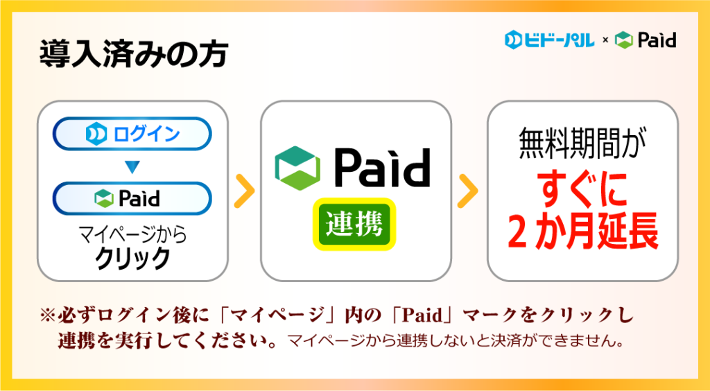 ※Paid度入企業様は「マイページ」にログインしてPaid連携していただくと、ビジネススタンダードクラス体験を2か月延長させていただきます。
