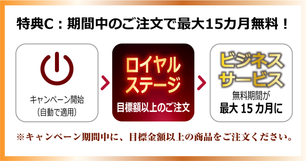✅ 特典C:キャンペーン期間中の注文金額が目標額を超えることが必要